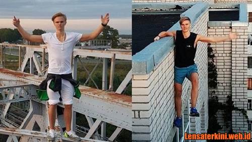 Di Rusia ada istilah keren yang mengacu pada seorang remaja yang menetap di lantai bangunan tertinggi karena tindakan konyol seperti berdiri di ujung sebuah bangunan atau tergantung dari tiang bangunan dan mengunggah fotonya di media sosial untuk menjadi virus, nya Nama adalah Roofers Dan Andrew Rerovsky ini salah satunya. Remaja berusia 17 tahun ini sudah sering melakukan aksi seperti ini.