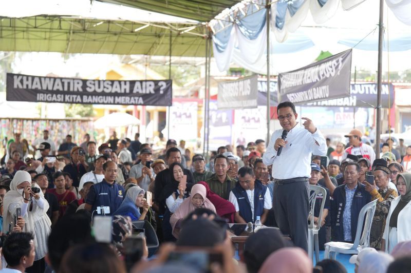 Jakarta (ANTARA) – Calon Presiden RI Anies Baswedan mendengarkan keluh kesah warga yang kebanyakan berprofesi sebagai petani saat berkampanye di Lampung pada hari ke-48 masa kampanye, Minggu.