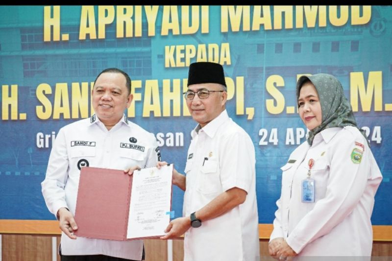 Palembang (ANTARA) – Penjabat(Pj) Bupati Musi Banyuasin (Muba) periode 2022-2024 Apriyadi Mahmud menyerahkan jabatan tersebut kepada penggantinya Sandi Fahlepi yang sebelumnya menjabat Kepala Biro Umum dan Perlengkapan Pemprov Sumatera Selatan.