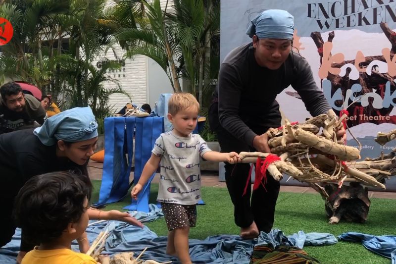 ANTARA – Para seniman muda Pulau Dewata yang tergabung dalam Kacak Kicak Puppet Theatre menampilkan pertunjukan teater boneka berjudul “Begol dan Rahasianya” di Tamora Gallery, Kabupaten Badung, Bali, Minggu (27/8). Keseruan pertunjukan teater boneka ini terlihat saat anak-anak turut berpartisipasi menggunakan boneka ikan yang terbuat dari limbah kayu. (Rita Laura/Sandy Arizona/Ardi Irawan)