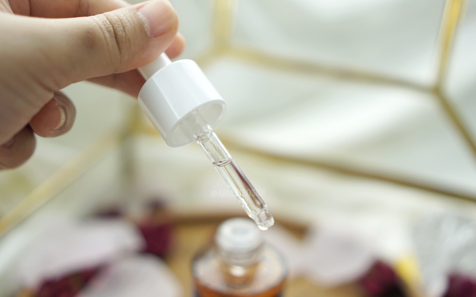 Packaging intinya juga super cantik banget berupaa botol kaca bening berwarna kecokelatan dengan pipet sehingga memudahkan kita untuk mengambil produknya.