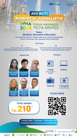 PT Pupuk Indonesia (Persero) resmi membuka program kompetisi karya jurnalistik Pupuk Indonesia Media Award (PIMA) 2022. Dengan mengusung tema besar “Makmur Bersama Indonesia”, kompetisi ini terbuka bagi seluruh wartawan, baik dari media massa tingkat nasional maupun media massa di daerah.