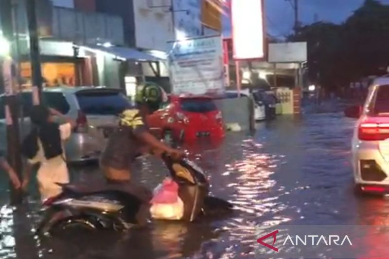 Sementara itu, beberapa titik jalanan di Kota Palembang tergenang air diakibatkan hujan deras yang terjadi selama hampir 2,5 jam.