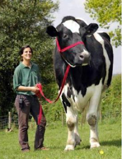lembu paling terbesar di dunia badanya penuh berisi daging dan sangat gemuk beratnya lebih dari 1 ton yang dirawat dan diberi makan secara teratur sapi paling jumbo tersebut memiliki ketinggiaan lebih tinggi dari manusia apalagi orang asia,hehehe tinggi 6 kaki.