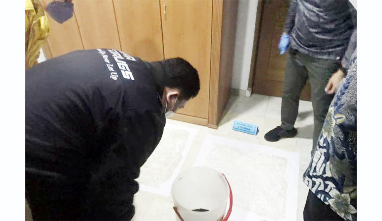 Setelah penyelidikan, petugas menangkap MS, NS dan AS, serta barang bukti 5.032 gram di dalam rumah tersebut, baik berupa sabu-sabu yang sudah jadi maupun yang masih dalam proses pembuatan. (jpg)