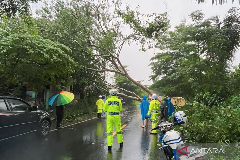 “Kendaraan roda dua dan empat tidak bisa melintas karena ruas jalan tertutup sebatang pohon,” katanya.