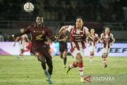 Pesepak bola Persis Solo Rian Miziar (kanan) adu cepat mengejar bola dengan pesepak bola PSM Makassar Adilson Gancho Da Silva (kiri) pada pertandingan BRI Liga 1 di Stadion Manahan, Solo, Jawa Tengah, Senin (4/3/2024). Persis Solo menang dengan skor 1-0. ANTARA FOTO/Mohammad Ayudha/Spt.