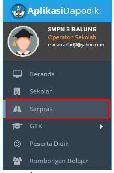 pengisian prasarana ruang kelas, klik pada menu “Sarpras”, kemudian periksa