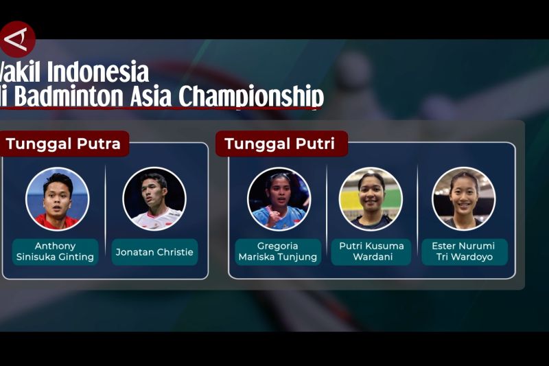 ANTARA – Sebanyak 14 perwakilan Indonesia berkompetisi di ajang Badminton Asia Championship 2024 dan berusaha mengumpulkan poin untuk lolos ke Olimpiade Paris 2024. Digelar di Ningbo, China pada 9-14 April 2024, berikut daftar skuad Indonesia. (Aria Cindyara/Keysha Anissa/Fahrul Marwansyah/Rijalul Vikry)
