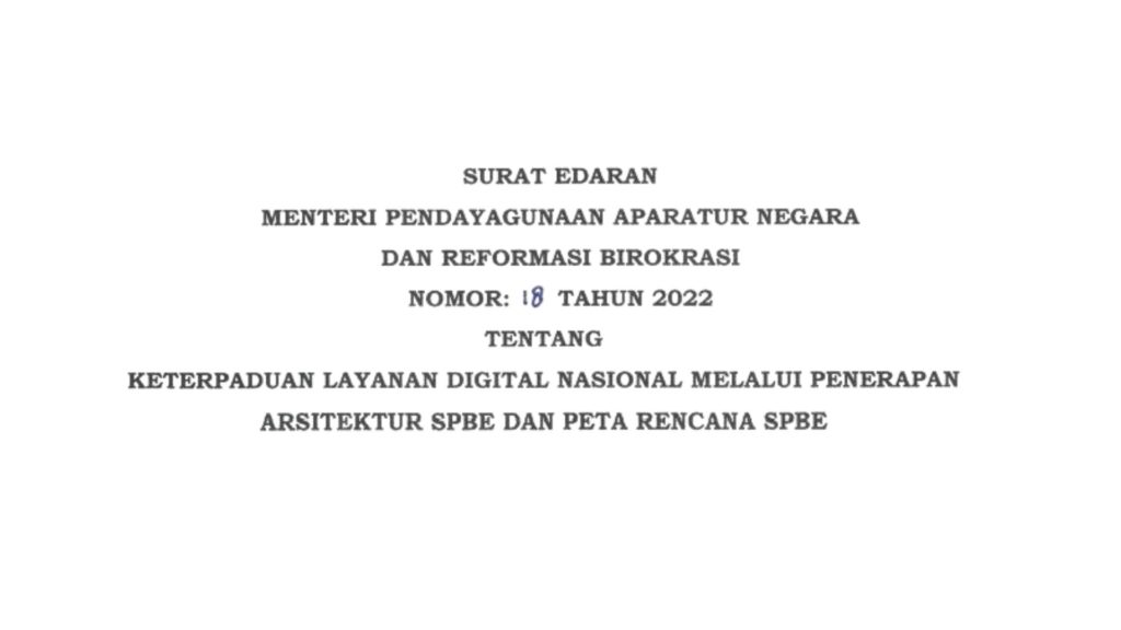 Hal ini dituangkan dalam Surat Edaran (SE) Menteri PANRB Nomor 18 Tahun 2022 tentang Keterpaduan Layanan Digital Nasional Melalui Penerapan Arsitektur SPBE dan Peta Rencana SPBE yang ditandatangani Plt. Menteri PANRB Mahfud Md pada 19 Agustus 2022.