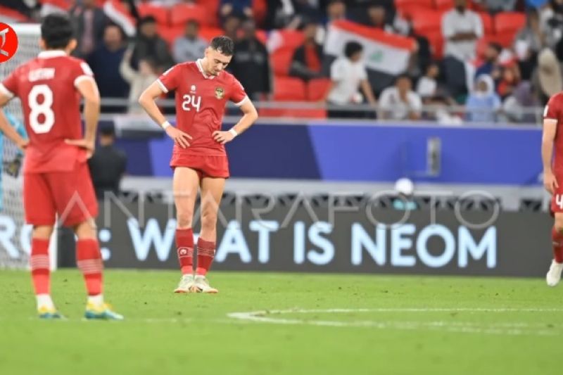 ANTARA – Walaupun kalah 1-3 dari Irak dalam laga Piala Asia 2023 yang digelar di Qatar, Senin (15/1) malam, Presiden Joko Widodo tetap memberikan apresiasi kepada seluruh penggawa Tim Nasional Sepak Bola Indonesia. Dia menilai Timnas Indonesia telah menampilkan yang terbaik. (Hanifan Ma’ruf/Soni Namura/Nusantara Mulkan)