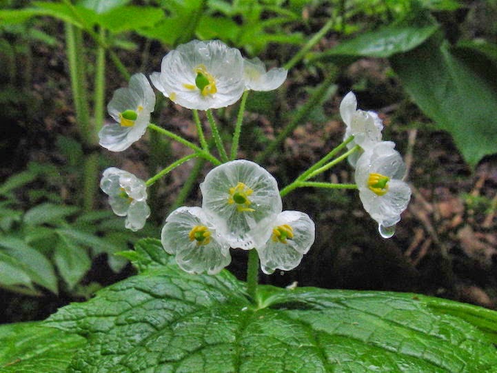 Diphylleia grayi yaitu bunga yang mengagumkan dengan kelopak putih yang bakal beralih jadi transparan yang indah waktu kontak dengan air. Sepanjang bunga bermandi air hujan, kelopak-kelopaknya yang awalannya putih beralih jadi transparan serta bungapun jadi mirip bunga kaca. Bunga ini dapat dijuluki ” bunga kerangka “, lantaran waktu transparan, yang terlihat cuma urat-urat halus seperti kerangka.