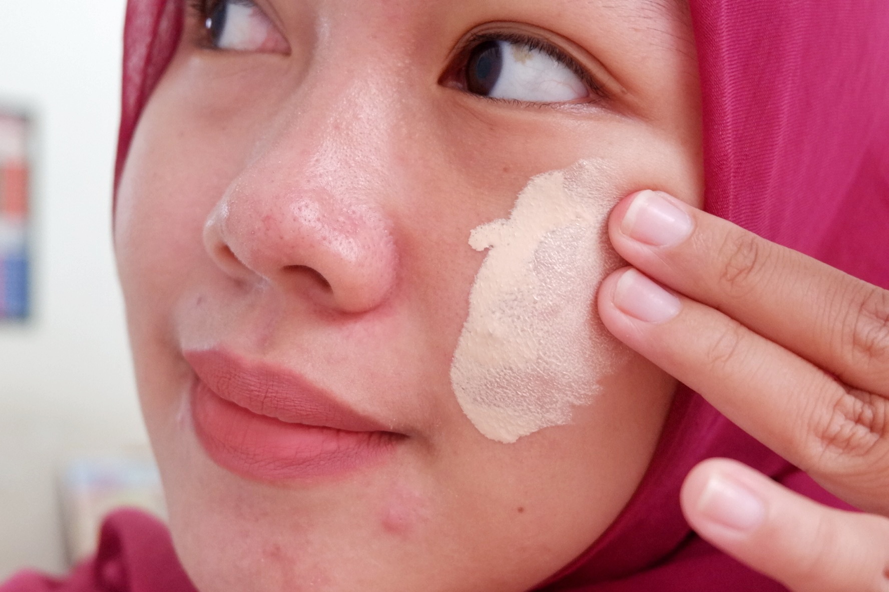 Disamping itu sunblock ini berwarna seperti foundation, tapi bukan foundi! karena dia tidak mengcover bekas jerawat atau noda lainnya. Pas di blend merata keseluruh wajah, Kulit natural warnanya. Cuma naikin tone kulit dari warna asli kulit kita. Ini nih yang saya maksud tadi di awal, rekomen buat yang mager foundationan dan bedakan tapi pengen kulit enggak kelihatan kusem yang terlindungi juga dari matahari. Karena kebanyakan sunblock kan transparant kalau sudah diaplikasikan, jarang yang bisa sekaligus menaikan tone kulit.