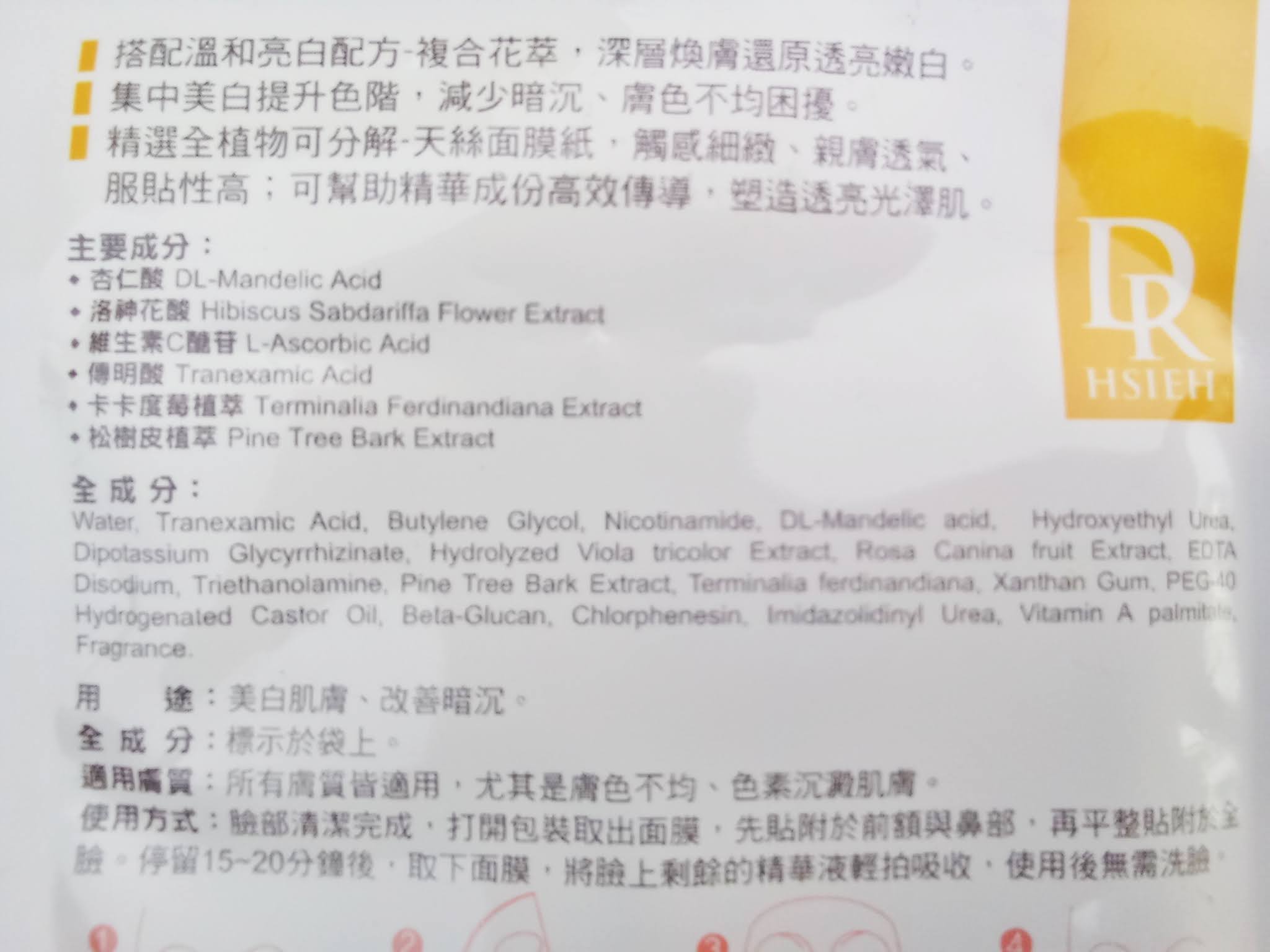 Harga Dr.Hsieh Mandelic Flower Acid Whitening High Concentration Mask : Rp 70.000/pcs