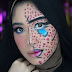 Selanjutnya aku mengerjakan sisi sebelah kanan, yaitu bagian pop art makeup.