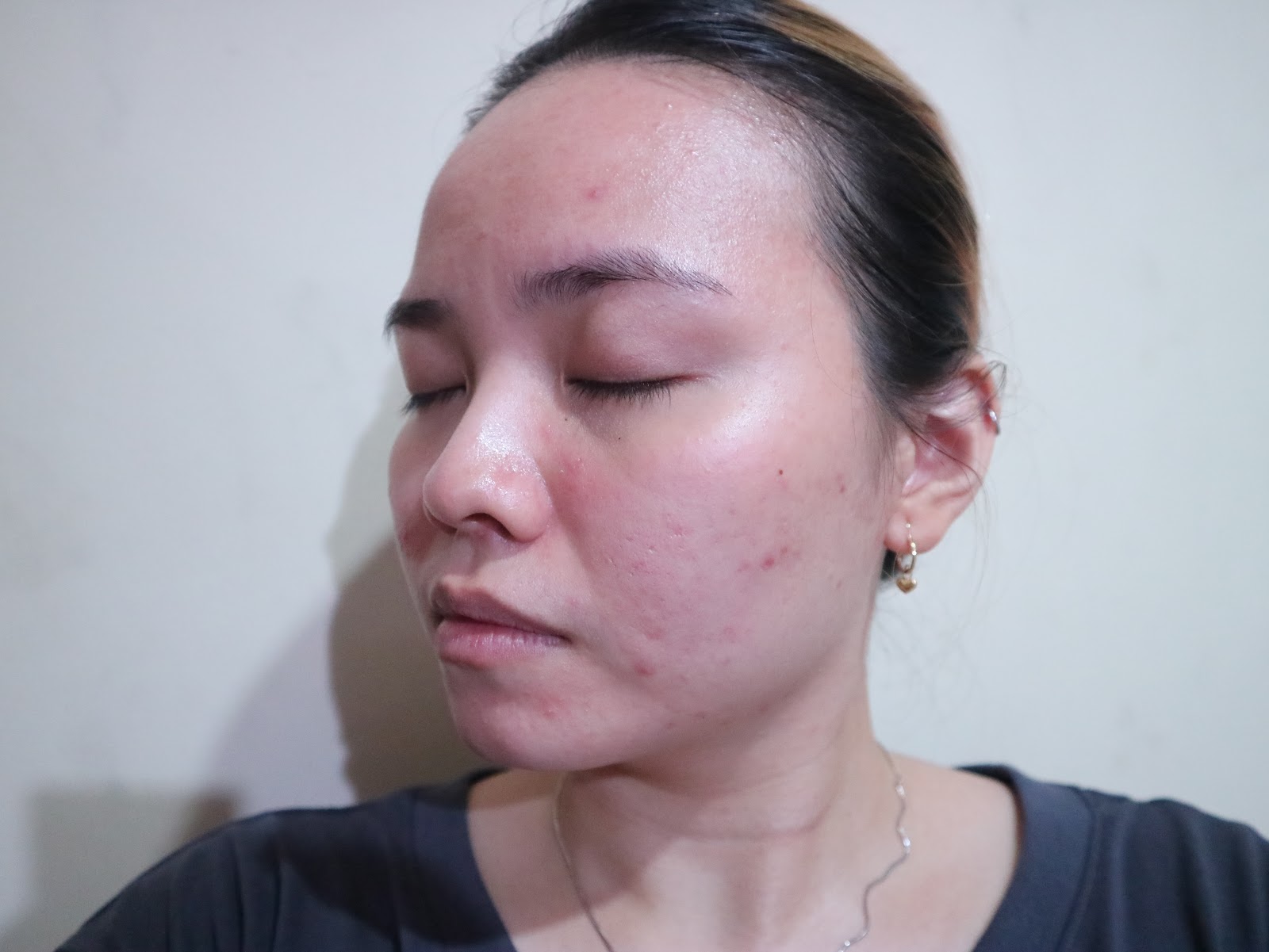 bekas-bekas jerawat masih terlihat, aku sih tau bekas jerawat itu ga mudah dihilangkan.
