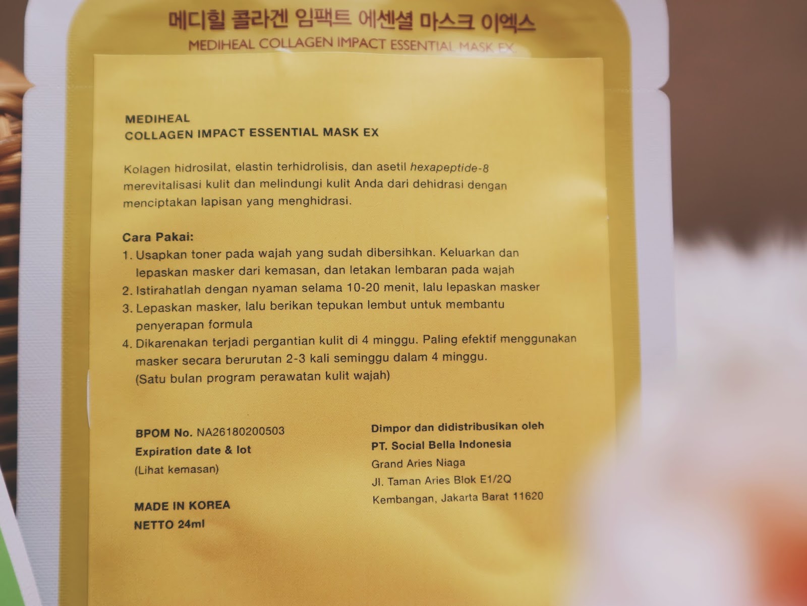 Mediheal collagen impact essential adalah masker esensial yang diformulasikan dengan marine collagen dan elastin untuk memberikan kelembapan yang efektif serta elastisitas kulit.
