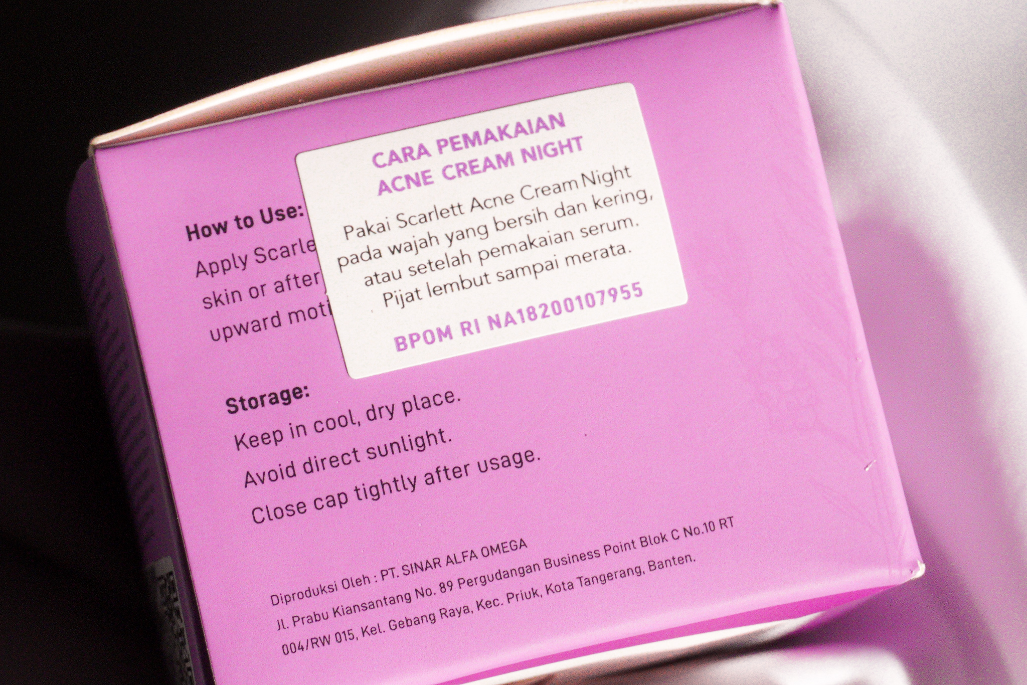 SCARLETT Acne Cream ada 2 varian for Day dan buat Night