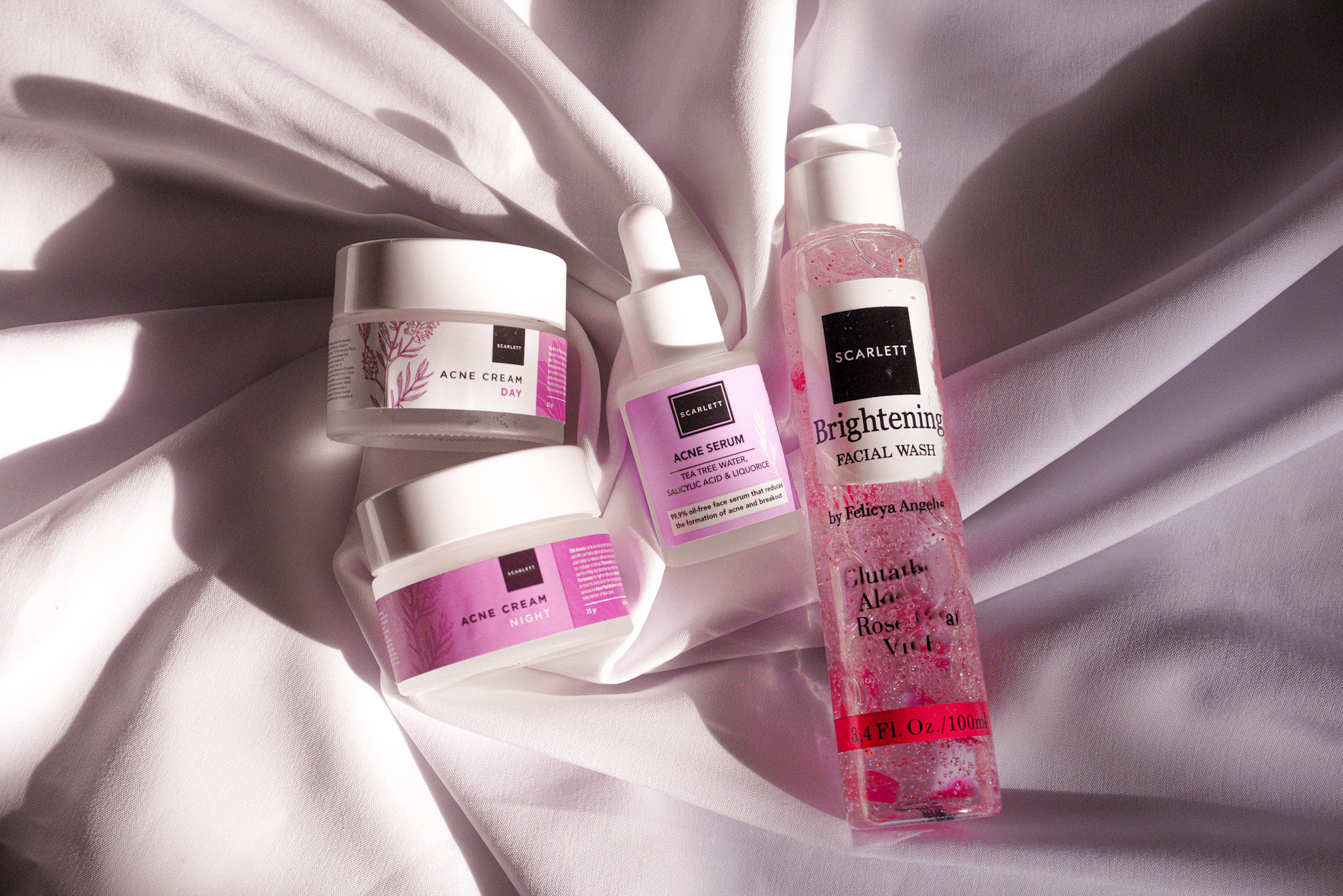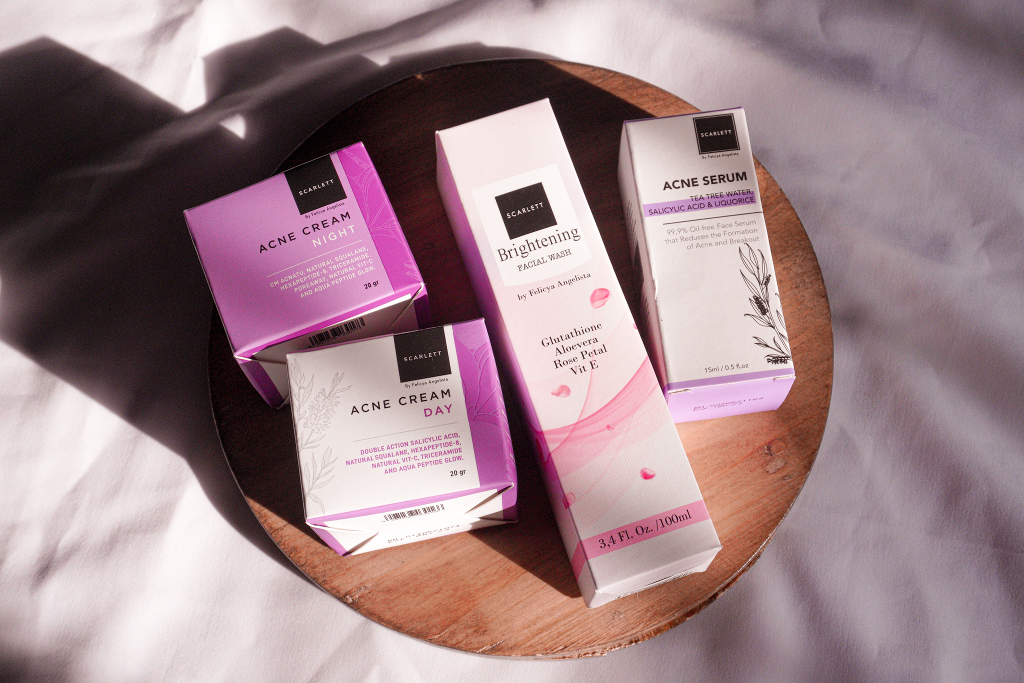 SCARLETT Brightening Facial Wash, Acne Serum, Acne Day Cream dan Acne Night Cream
