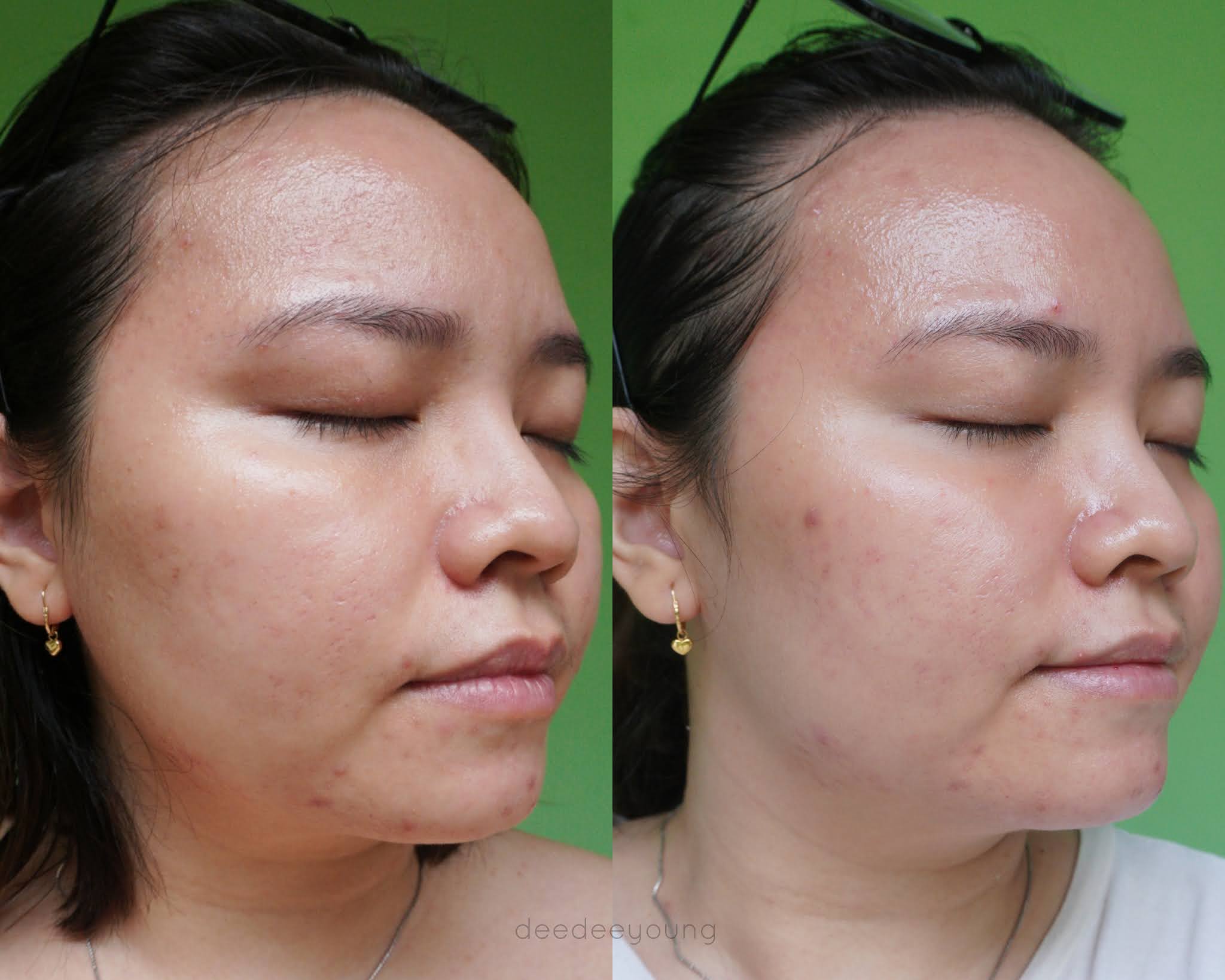 Jerawat ada aja yang nimbul yah, karena jerawatku hormon bawaannya jadi makan gorengan, tidur kemaleman, kurang minum air putih juga bisa langsung jerawatan. tapi yang penting buat aku, kulitnya ga breakout dan ga bikin jerawat parah numbuh. Selama 2 minggu pake ga ada rasa iritasi, kemerahan secara keseluruhan ada tapi pas udah selesai seminggu pake merahnya mereda, sisa redspots dari jerawat-jerawatnya yah 2 minggu menurutku masih masa adaptasi sih tapi udah 2minggu kulitku nerima baik pake serum ini cukup buat aku bilang aku cocok sama serumnya.