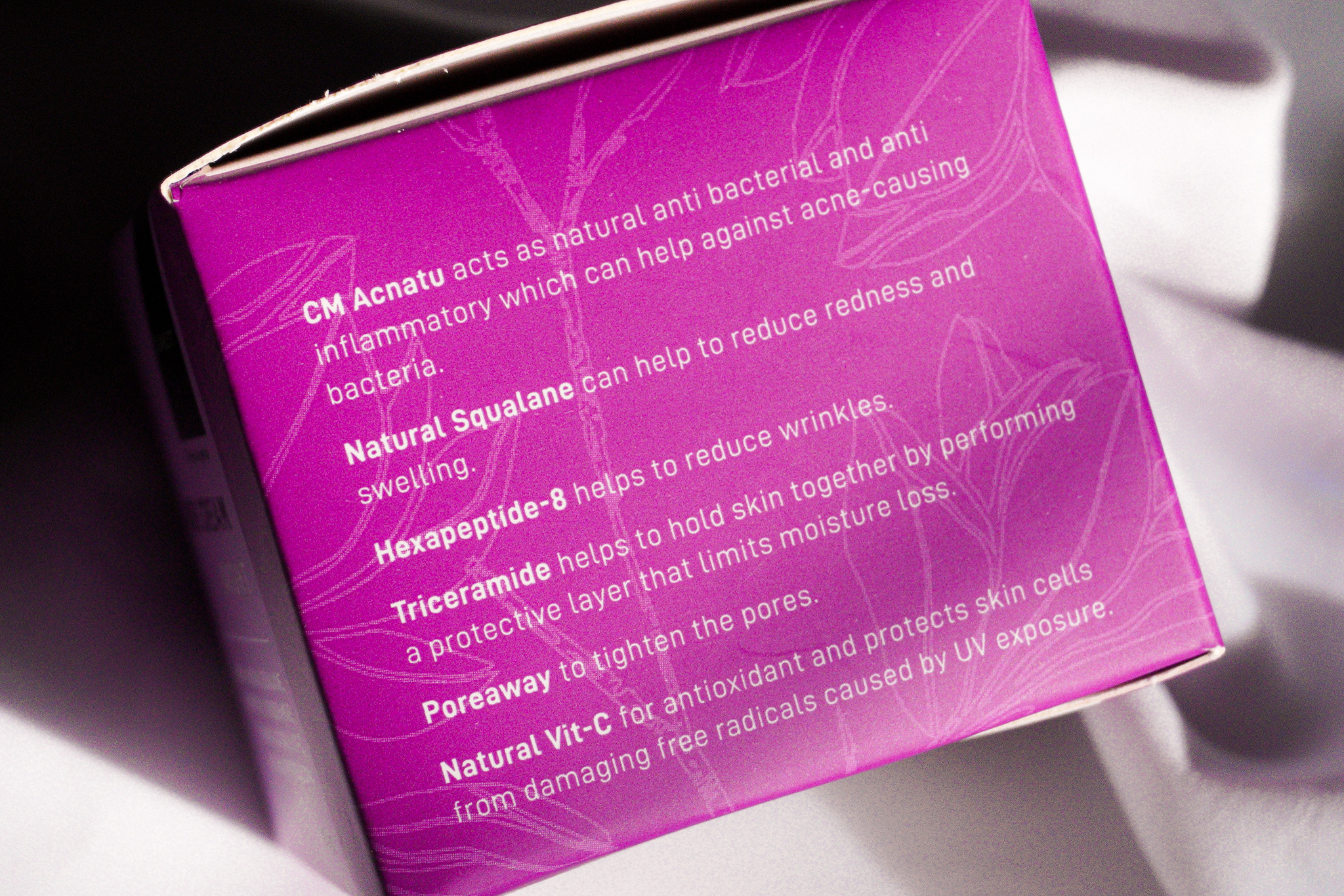 dan kandungan utama dari Night cream: CM Acnatu, Natural Squalane, Hexapeptide-8, Triceramide, Poreaway, Natural Vit-C dan Aqua Peptide Glow. Ini penjelasan lebih dari masing-masing kandungan