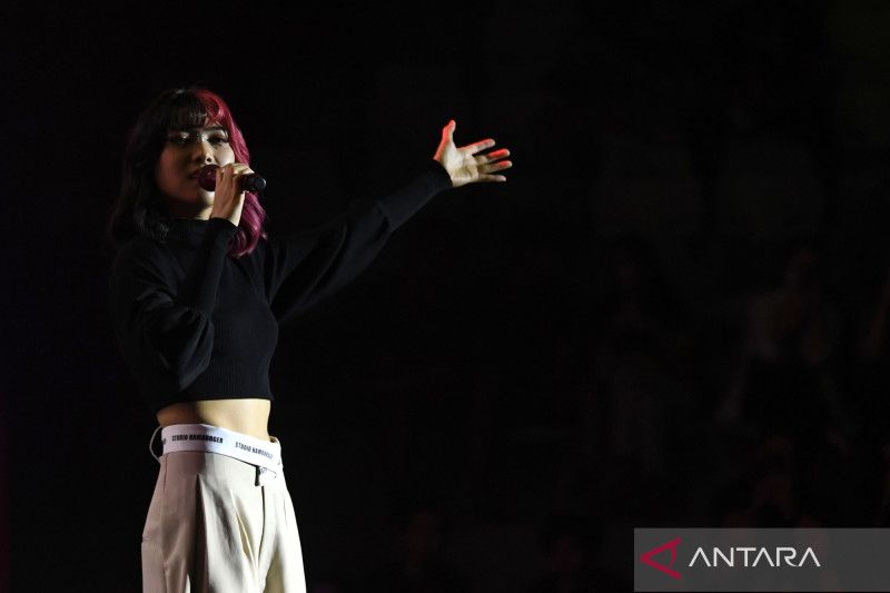 Penyanyi Isyana Sarasvati melantunkan lagu dalam Festival Berdendang Bergoyang di Istora Senayan, Kompleks Gelora Bung Karno (GBK), Jakarta, Sabtu (29/10/2022). Festival musik yang berlangsung hingga Minggu (30/10) tersebut menampilkan puluhan penyanyi dan grup musik lintas aliran di lima panggung dalam satu area di Istora Senayan. ANTARA FOTO/Aditya Pradana Putra/wsj.