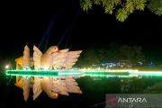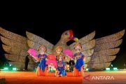 Suasana panggung utama Festival Pesona Danau Limboto dengan bentuk burung mandar besar di Pentadio Resort, Kabupaten Gorontalo, Senin (24/6/2024). Festival Pesona Danau Limboto merupakan salah satu Kharisma Event Nusantara (KEN) 2024 Kementerian Pariwisata dan Ekonomi Kreatif yang menampilkan berbagai jenis kegiatan dengan konsep atraksi seni dan budaya di antaranya seni pertunjukan, fesyen, kuliner, olahraga dan permainan tradisional sebagai salah satu upaya pelestarian dan promosi Danau Limboto. ANTARA FOTO/Adiwinata Solihin/Spt.