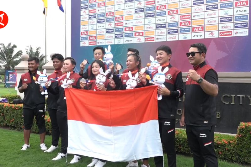 ANTARA – Tim golf Indonesia ikut menyumbang tambahan dua medali dari nomor beregu putra dan beregu putri pada ajang SEA Games 2023 Kamboja, Sabtu (13/5). Tim golf beregu putri sukses menyumbangkan medali perak, sedangkan tim beregu putra medali perunggu. (Yogi Rachman/Arif Prada/Rinto A Navis)