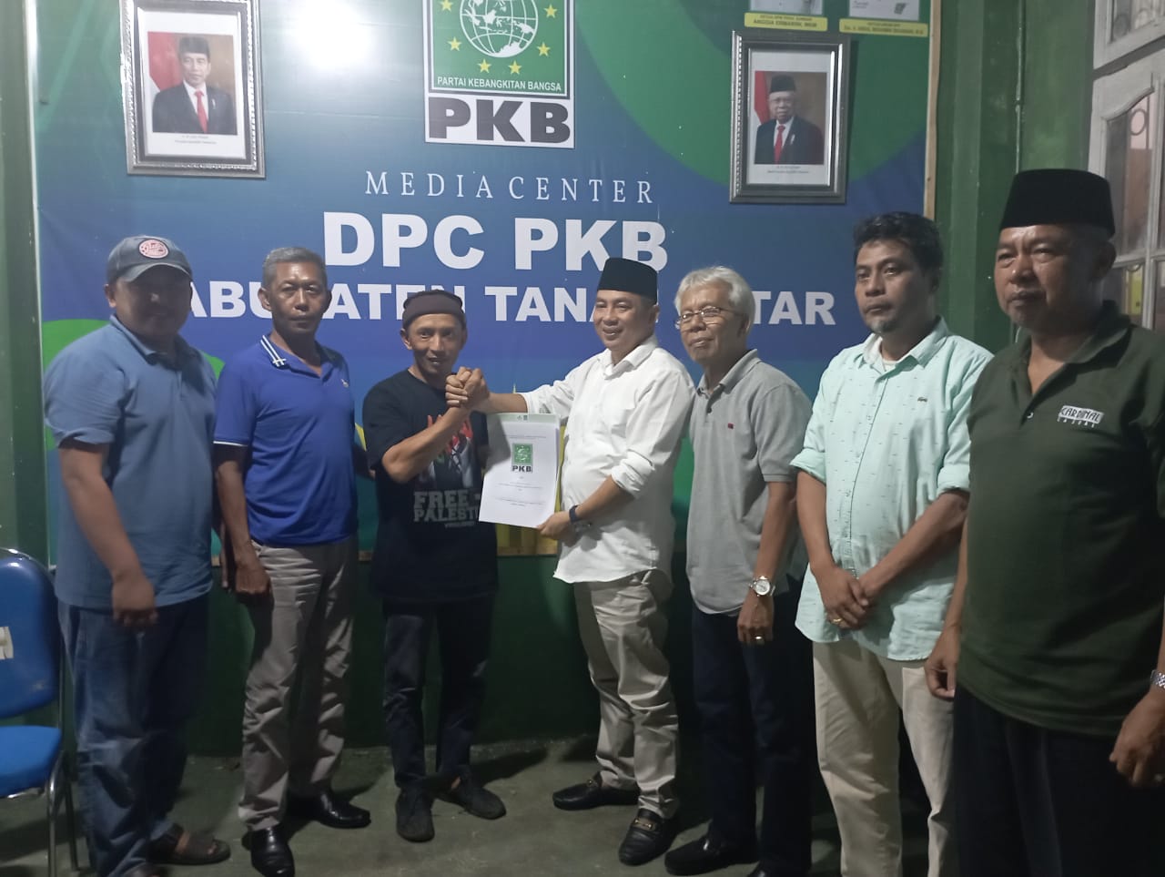 H. Suherman datang bersama tim, disambut Sekretaris PKB Firdaus, S. Pd, Bendahara Winparidalah dan anggota tim penjaringan.