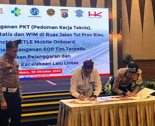 Kolaborasi ini direalisasikan melalui Penandatangan Perjanjian Kesepakatan Keselamatan antara Hutama Karya yang diwakili oleh Executive Vice President (EVP) Divisi Operasi & Pemeliharaan Jalan Tol (OPT) Dwi Aryono Bayuaji dengan Polda Riau yang diwakili Dirlantas Kombes Pol Dwi Nur Setyawan, Senin (30/10) di Hotel Pangeran Pekanbaru, dihadiri Kepala Dishub Riau Andi Yanto dan perwakilan BPTD Kelas II Riau, dan Kejari.