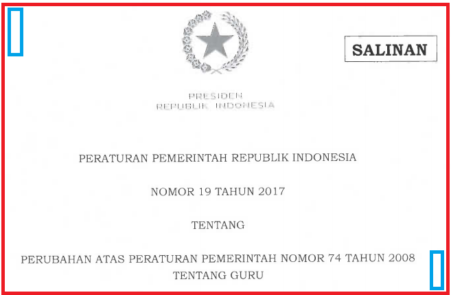 Bagi rekan-rekan guru di seluruh Indonesia, berikut ini adalah isi Peraturan Pemerintah (PP) No.19 Tahun 2017 yang telah menggantikan PP 74 Tahun 2008 Tentang Guru.