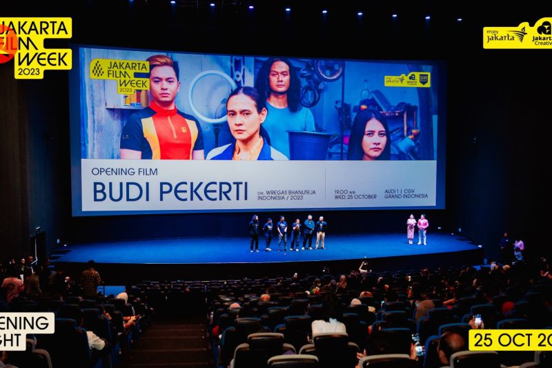 ANTARA – Film “Budi Pekerti” dari Wregas Bhanuteja jadi pembuka gelaran tahun ketiga Jakarta Film Week 2023 yang diselenggarakan oleh Pemerintah Provinsi DKI Jakarta melalui Dinas Pariwisata dan Ekonomi Kreatif (Disparekraf) DKI Jakarta, Rabu (25/10) malam. Gelaran ini hadir lebih semarak untuk menjelajahi era baru bersama penonton melalui film-film pilihan dari berbagai belahan dunia, serta kegiatan bersama dari berbagai pelaku industri dan komunitas film, baik lokal maupun internasional. (Hilary Bernadetha Rangan P/Rayyan/Nanien Yuniar)