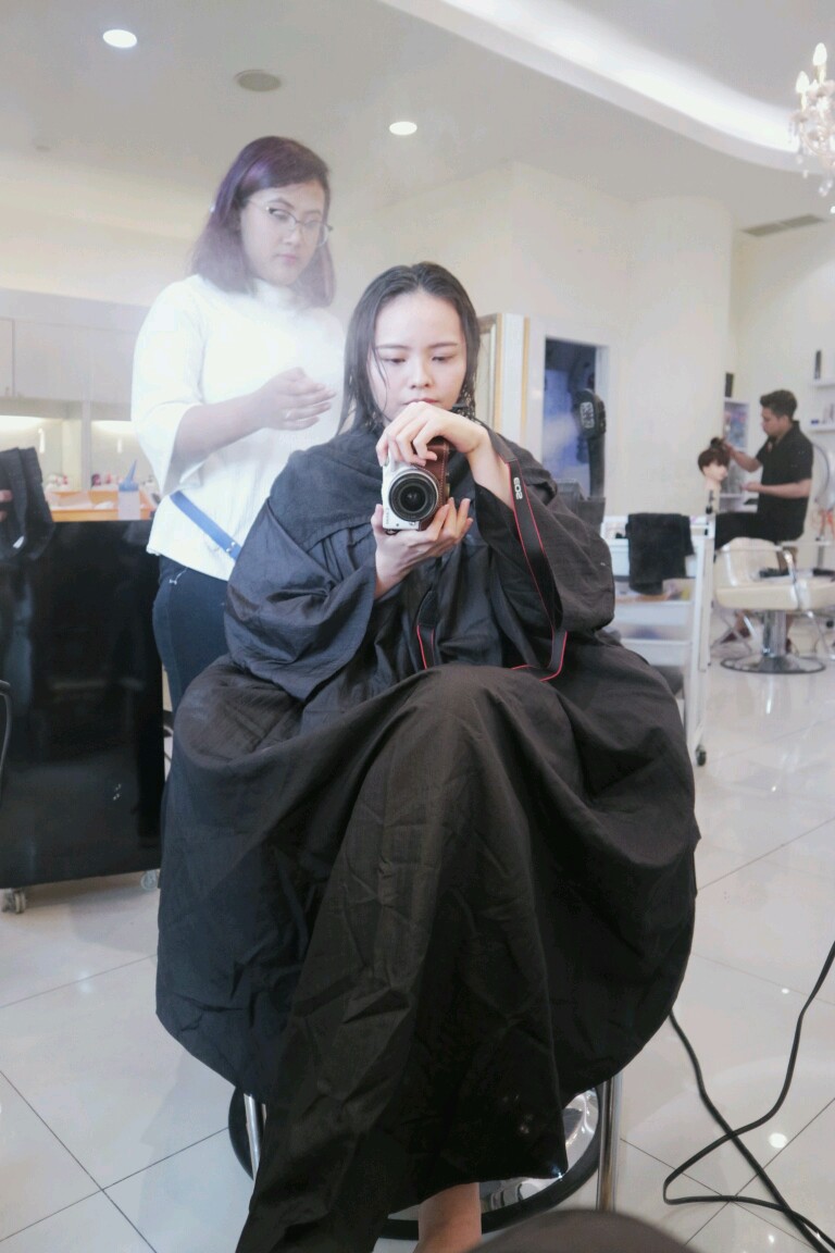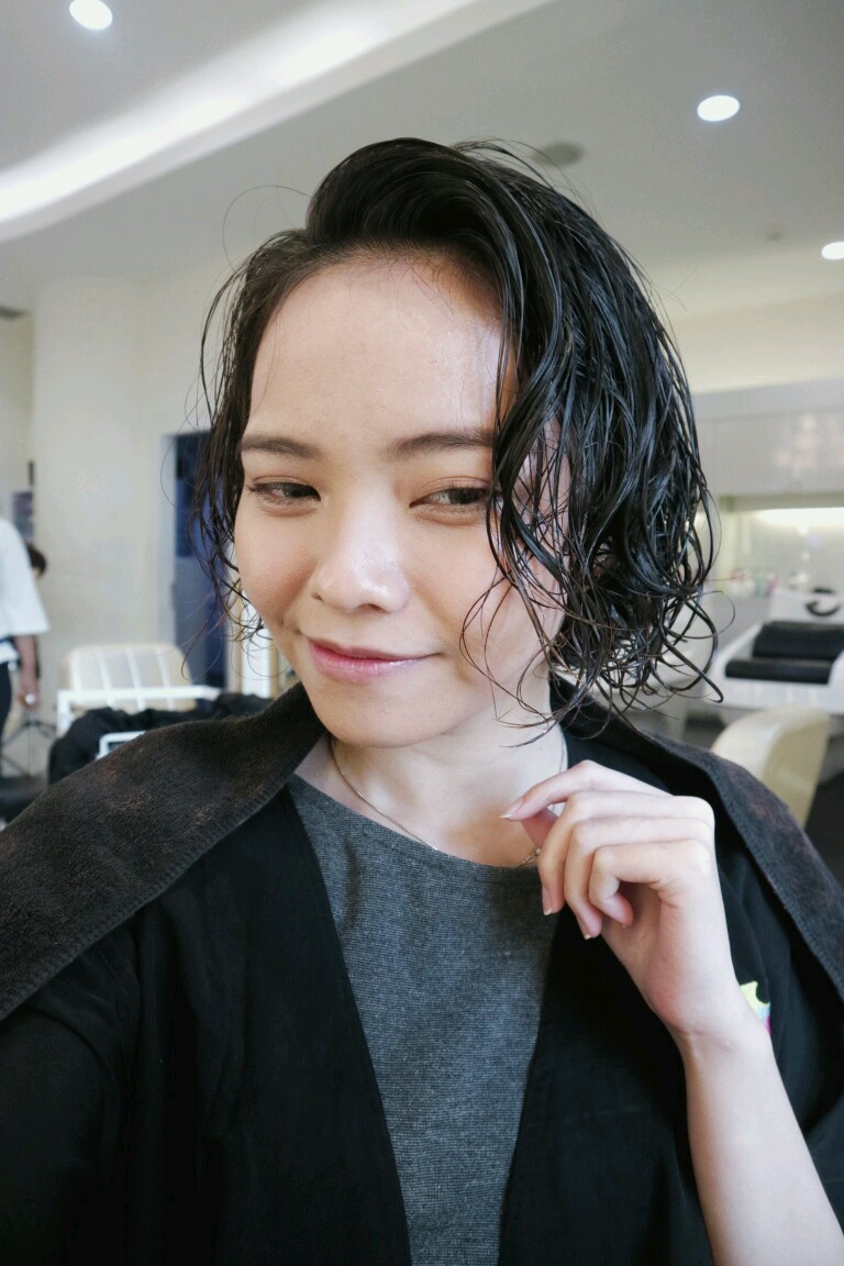 When it’s done, they prepared me for the perm. Changing to black outfit. Haha?