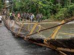 Jembatan gantung yang berada di Desa Kregenan, Kecamatan Kraksaan, Kabupaten Probolinggo, Jawa Timur, putus saat tengah dilewati puluhan pelajar SMPN 1 Pajarakan, Kabupaten Probolinggo, Jumat (9/9/2022).