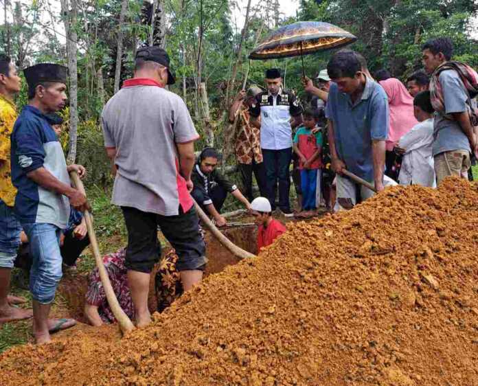 Kalapas Klas III Suliki ikut mengawal tahanan yang diizinkan menghadiri pemakamanan sekaliguas menyampaikan duka cita dan bela sungkawa.