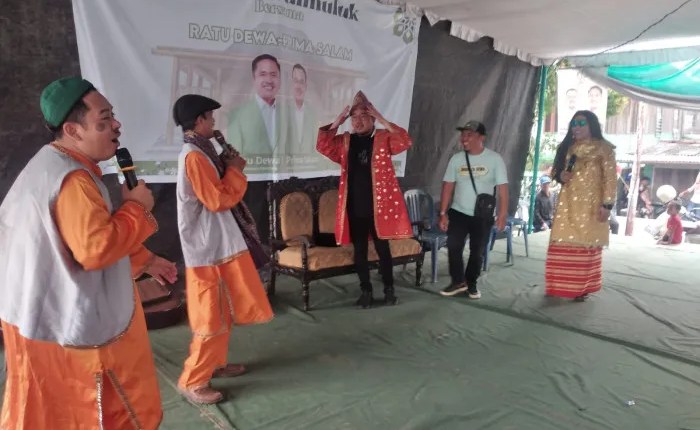 Kampanye pasangan Calon Walikota Palembang Ratu Dewa dan Calon Wakil Walikota Palembang Prima Salam (RDPS) kali ini terbilang unik lantaran mengundang group sanggar dulmuluk kota Palembang , Harapan Jaya pimpinan Jonhar Saad, Minggu (10/11) di Lorong Kedukan II, Jalan Sidoing Lautan, Kelurahan 35 Ilir Palembang.(BP/ist)Palembang, BP- Kampanye pasangan Calon Walikota Palembang Ratu Dewa dan Calon Wakil Walikota Palembang Prima Salam (RDPS) kali ini terbilang unik lantaran mengundang group sanggar dulmuluk kota Palembang , Harapan Jaya pimpinan Jonhar Saad, Minggu (10/11) di Lorong Kedukan II, Jalan Sidoing Lautan, Kelurahan 35 Ilir Palembang.