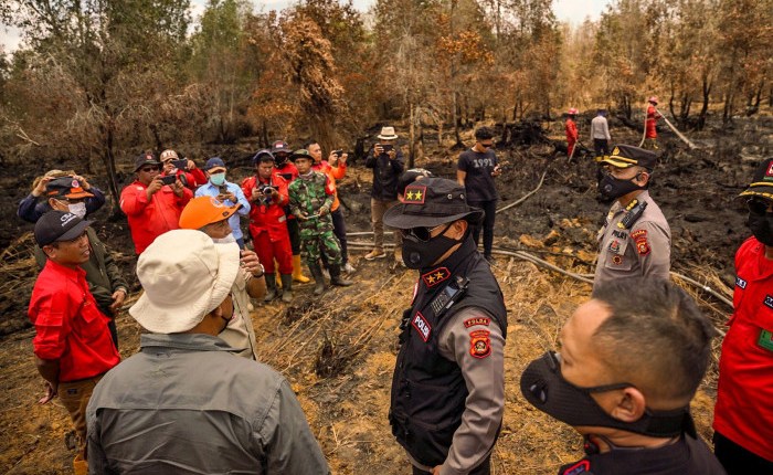 Kapolda Sumsel Irjen Pol A.Rachmad Wibowo SIK melaksanakan patroli udara menggunakan helikopter milik Polri di daerah rawan kebakaran hutan dan lahan (Karhutla) di wilayah Kabupaten Ogan Ilir sekitar pukul.10.30 tiba di perkebunan Sawit PT.Rambang Agro Jaya.