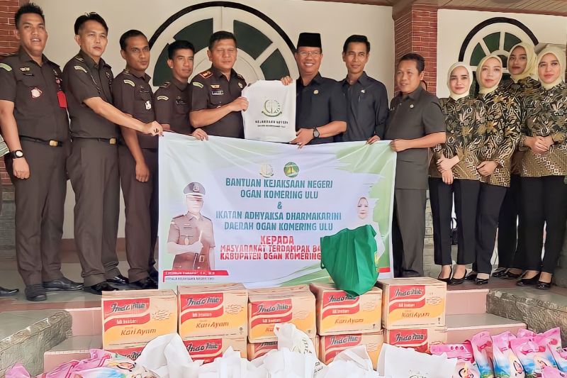 Baturaja (ANTARA) – Jajaran Kejaksaan Negeri (Kejari) Kabupaten Ogan Komering Ulu (OKU), Sumatera Selatan menyalurkan bantuan sosial kepada korban banjir di wilayah tersebut untuk meringankan kebutuhan masyarakat setelah dilanda bencana alam.