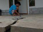 Kejadian secara tiba-tiba itu menyebabkan tanah-tanah juga retak serta dinding rumah warga, mulai retakan dari kecil hingga membesar.