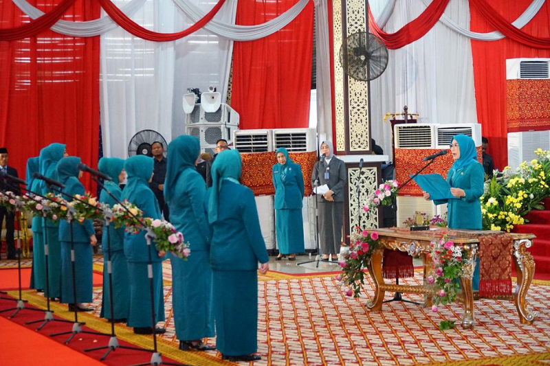 “Saya percaya para Penjabat Ketua TP PKK Kab/Kota yang baru saja dilantik akan melaksanakan tugas dan kewajiban sebaik – baiknya dengan dipenuhi tanggung jawab dan peran serta dalam mensejahterakan masyarakat dan desa,” kata Hj Feby.