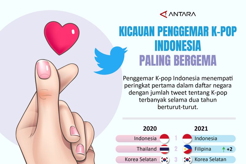 Penggemar K-pop Indonesia menempati peringkat pertama dalam daftar negara dengan jumlah kicauan (tweet) tentang K-pop terbanyak selama dua tahun berturut-turut.