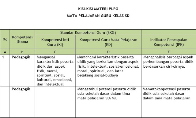 Kali ini kami bagikan Kisi kisi untuk materi PLPG tahun 2017 untuk jenjang Sekolah Dasar (SD), Dengan persiapan terbaik bagi rekan guru sangat mungkin akan lebih mudah dalam memenuhi target kelulusan sertifikasi guru yang minimal nilai UTN 80, tentunya target ini harus dicapai agar sertifikat pendidik bisa di terima, sehingga bisa menjadi guru yang benar-benar profesional.
