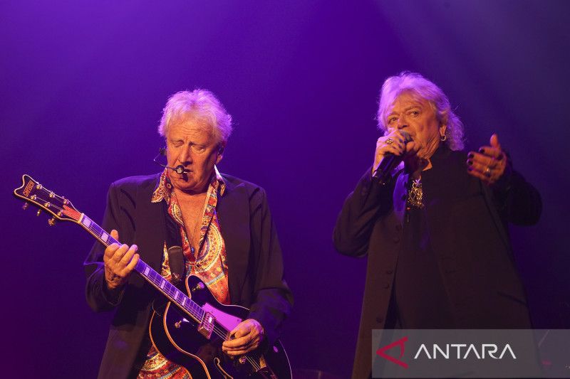 Personel grup musik Air Supply Graham Russell (kiri) dan Russell Hitchcock (kanan) menghibur penonton saat konser di Jakarta, Sabtu (10/12/2022).. Dalam konser yang bertajuk “Lost in Love Experience”, grup musik soft rock asal Australia tersebut membawakan 15 lagu andalan, salah satunya adalah Goodbye, Even The Night dan Here I Am. ANTARA FOTO/Rivan Awal Lingga/pras.