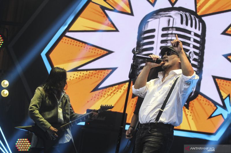 Aksi band Jamrud saat konser Jamrud Perspective di Studio Sepat 72, Jakarta, Rabu (24/11/2021). Konser yang digelar untuk merayakan 25 tahun jamrud berkarya tersebut dilakukan secara daring dan luring serta sekaligus untuk meluncurkan lagu terbaru berjudul Arogan dan Ea Eo. ANTARA FOTO/Asprilla Dwi Adha/hp.