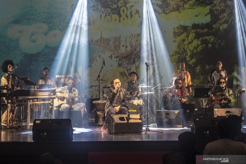 Grup band Coconuttreez beraksi dalam konser yang bertajuk ‘Langsamkan’ di Gedung Kesenian Jakarta, Selasa (30/11/2021). Dalam konser yang digelar dalam rangka mengenang Steven Nugraha Kaligis vokalis band tersebut, Coconuttreez membawakan sejumlah lagu seperti Kembali, Holiday dan Selamat Jalan Kawan. ANTARA FOTO/Muhammad Adimaja/hp.