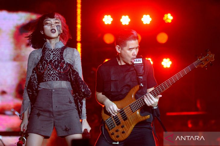 Penyanyi Isyana Sarasvati beraksi menghibur penonton saat konser bertajuk ‘Lexiconcert Live on Tour’ di kawasan Nusa Dua, Badung, Bali, Jumat (22/7/2022). Pada konser terakhir dalam rangkaian ‘Lexiconcert Live on Tour’ babak pertama tersebut, Isyana Sarasvati membawakan sejumlah lagu seperti Lexicon, Il Sogno, Unlock the Key serta Sikap Duniawi. ANTARA FOTO/Fikri Yusuf/hp.