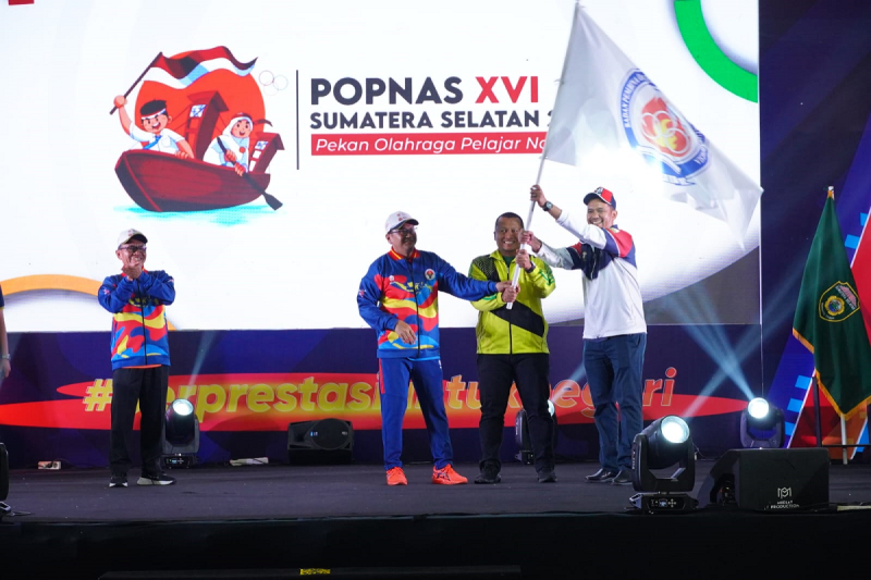 Penutupan POPNAS ke-XVI dilakukan langsung Sekretaris Daerah Provinsi Sumsel SA Supriono bersama Asisten Deputi Sentra Pembinaan Olahraga Prestasi Kemenpora RI, Bayu Rahardian dan Asisten Deputi Tenaga dan Organisasi Olahraga Kemenpora RI, M Aziz Ariyanto.