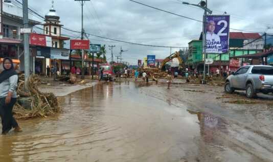 PADEK.CO–Hanya dalam satu malam, kota mungil Lubuksikaping porak-poranda dihantam banjir bandang. Sejumlah fasilitas umum, jalan, jembatan, sarana air bersih PDAM, musala, rumah, ruko, lahan pertanian dan kolam ikan.warga, luluh lantak, hancur dihantam air bercampur lumpur dan bongkahan kayu bekas tebangan.