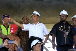 Menko PMK Muhadjir Effendy (tengah) didampingi Bupati Merauke Frederikus Gebze (kedua kanan) meninjau proyek pembangunan Stadion Katalpal Merauke, Papua, Kamis (23/1/2020). Kunjungan kerja Menko PMK tersebut meninjau persiapan …