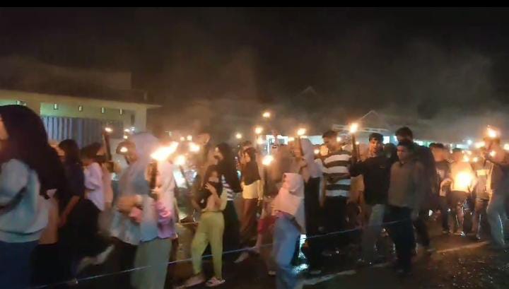 Walaupun diguyur hujan, antusias peserta pawai obor cukup perlu di apresiasi.